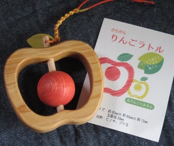 カゴサイズ 約220×160×70 mm りんごラトル 約80mm×約80mm×約12mm 玉直径25mm ぼくのくるま高さ75mm×長さ110mm×幅(タイヤ幅込)65mm タイヤ径40mm 信州森の動物パズル(6ピース) 縦140mm×横140mm×厚30mm