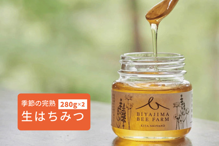 【ふるさと納税】BIYAJIMA BEE FARM『季節の完熟生はちみつ 一瓶280g×2個』北信濃の大自然がぎゅっとつまった、完全非加熱・無農薬・除草剤、防腐剤不使用の国産天然蜂蜜【長野県信濃町】
