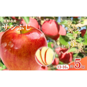 長野市産 サンふじ 約5kg(13~16玉) 【賞味期限】 直射日光をさけて涼しい所に保管して下さい。 【アレルギー】 りんご ※ 表示内容に関しては各事業者の指定に基づき掲載しており、一切の内容を保証するものではございません。 ※ご不明の点がございましたら事業者まで直接お問い合わせ下さい。