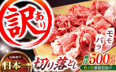 【6回定期便】【訳あり】長崎和牛 切り落とし 赤身 モモ バラ 500g(250g×2) / 長崎和牛 A5ランク ワケあり 小間切れ / 諫早市 / 野中精肉店 [AHCW013]