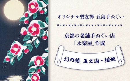 五島列島『幻の椿 玉之浦・紺地』オリジナル型友禅 てぬぐい 手ぬぐい 五島市/きわわ [PFT005]