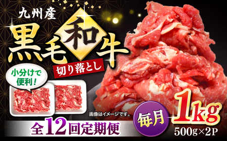九州産黒毛和牛 国産豚 切り落とし 計2kg(各1kgずつ)×12回定期便