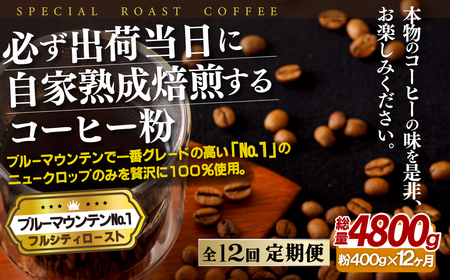 必ず出荷日に自家熟成焙煎ブルーマウンテン粉No.1(400g)【12回定期便】