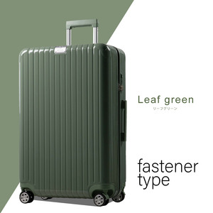 ○FK-2823 スーツケース L リーフグリーン スーツケース[外寸]77×50.5×27.5cm、[内寸]72×48×25cm (重量:約5.2kg・容量:約86L) 【一年間修理保証について】 通常使用での部品破損については一年間無償修理サービスをご提供いたします。キャスター、ハンドル、キャリーバー、ロックの破損が修理可能です。 ※運送会社の取り扱い不注意による破損・傷・ボディ割れ、摩耗、汚損等は修理保証サービス対象外となりますので予めご了承ください。 ※修理センターまでの送料は、お客様ご負担となります。 【ご注意点】 ※運送時等による多少のキズ・汚れはご了承ください ※商品の色味はお客様のディスプレイ環境により変わります ※商品は、品質向上のために常に改良しておりますので一部部品が説明画像と異なる場合もございます予めご了承ください ※寸法は縦×横×奥行での表記です。また外寸はキャスター・ハンドル・台座込みの表記となっております。多少の誤差はご了承ください。 ※商品説明に使用している商品画像は主にMサイズになります。