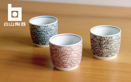 【白山陶器】【グラフ】湯のみ猪口 3色セット【波佐見焼】[TA169]