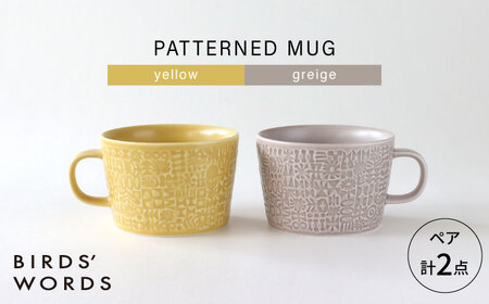 【波佐見焼】PATTERNED MUG ペア2色セット yellow+greige 【BIRDS’ WORDS】[CF081]