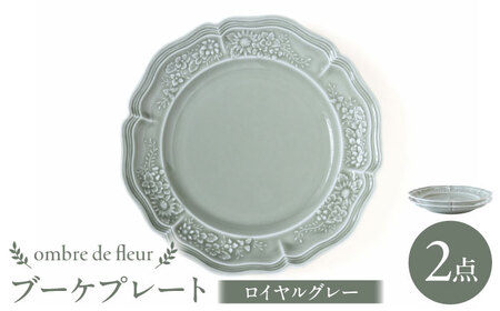 【波佐見焼】ombre de fleur ブーケプレート ロイヤルグレー 2枚セット 食器 皿【翔芳窯】[FE347]