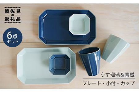 【波佐見焼】八角シリーズ 6点セット うす瑠璃・青磁 皿 食器 カップ【和山】 [WB23] 波佐見焼