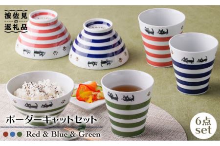 【波佐見焼】ボーダーキャット くらわんか 茶碗・カップ 各3色 計6点セット 食器 皿 【新生和】 [DE13] 波佐見焼
