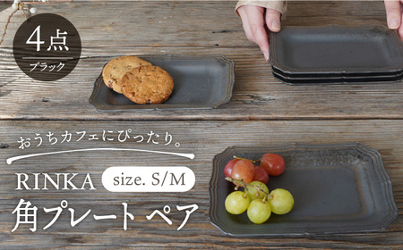 【波佐見焼】RINKA 角 プレート (ブラック)ペアセット(4点) 食器 皿 【藍染窯】 [JC70] 波佐見焼