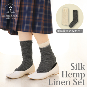 重ね履きシルクヘンプリネン 2枚セットA ライトブラック杢|靴下 くつした ソックス [2855]