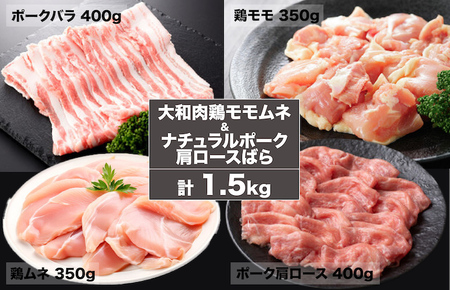 大和肉鶏モモ[350g×1] 大和肉鶏ムネ[350g×1] 鹿児島産ナチュラルポーク肩ロース[400g×1] 鹿児島産ナチュラルポークバラ[400g×1]