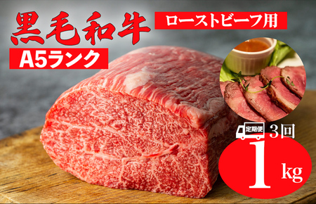 【全3回定期便】黒毛和牛 A5ランク モモブロック 1kg ローストビーフ用 牛肉 冷蔵 ローストビーフ クリスマス 焼肉 BBQ 赤身 国産 ランキング 上位 人気 おすすめ