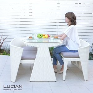 LUCIAN ラタン調ガーデンテーブル4点セット ホワイト 4人掛け / コスティック インテリア 屋外テーブル テラス コンパクト 省スペース設計 奈良県 御所市