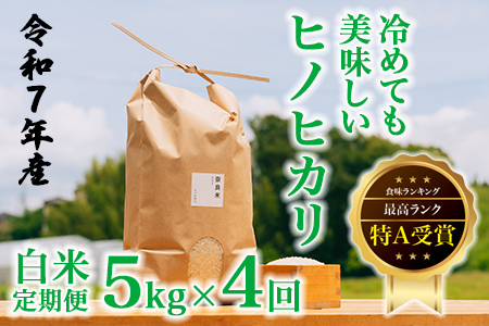 【定期便】令和7年産 冷めても美味しいヒノヒカリ白米5kg×4ヶ月