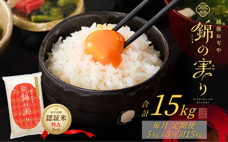 令和7年産 魚沼産コシヒカリ 定期便 小千谷市ブランド認証米「錦の実り」特Aランク 精米15kg (5kg×毎月全3回)