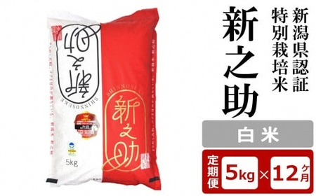 【12ヶ月定期便】新潟県認証特別栽培米 新之助 白米 5kg×12回(計 60kg)アグリーホンマ[Y0374]