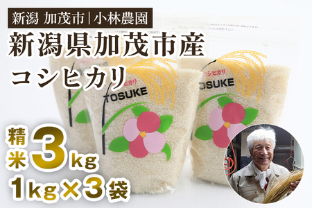 【令和7年産】加茂市小林農園のコシヒカリ 3kg(1kg×3袋) 新潟産コシヒカリ