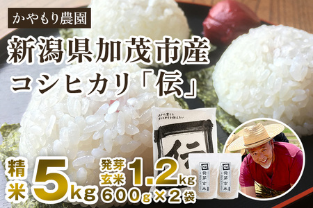 【令和7年産新米】新潟産コシヒカリ「伝」精米5kgと発芽玄米1.2kg(600g×2)セット 《9月下旬~順次出荷》 かやもり農園
