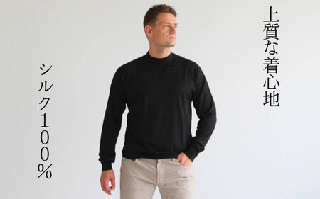 メンズセーター モックネック カラー:ブラック、ホワイト、ネイビー 素材:シルク100% Mサイズ:着丈67cm/肩幅45cm/身幅54cm/袖丈60cm Lサイズ:着丈70cm/肩幅48cm/身幅57cm/袖丈62cm