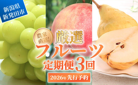 2026年発送 先行予約 果物 定期便 全3回 シャインマスカット 桃 ルレクチェ フルーツ 新潟 新発田 髙橋農園 takahashi004