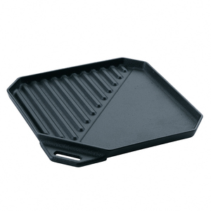材質:本体/鉄(窒化加工)、ハンドル/ステンレス鋼 板厚:本体/2.0mm サイズ:約45×24.5×7.6cm、(持手含まず:高さ約4cm×直径24cm) 重量:約1㎏