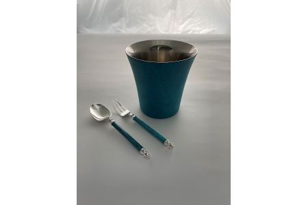 セット内容: 二重タンブラー 構造:二重構造 材質:18-8ステンレス 仕上:銅メッキ+着色 寸法:約Φ90×92mm 重量:約203g 容量:約260ml 食器洗浄機:非対応 スプーン・フォーク 材質:ステンレス、真鍮 仕上:着色 寸法:スプーン/約125mm、フォーク/約126mm 重量:スプーン/約22g、フォーク/約17g 食器乾燥機:非対応