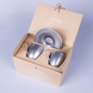 容量:満水100ml 構造:カップ/二重構造 ソーサー/一重構造 材質:18-8ステンレス 仕上げ:ヴィンテージ加工 サイズ:カップ/幅9cm×奥行6.2cm×高さ6.2cm ソーサー/直径12cm×高さ1.8cm 重量:カップ/約110g ソーサー/約68g 食器洗浄機:対応