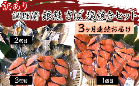 H7-A8【3ヶ月連続お届け】訳あり 調理済 銀鮭 さば 塩焼きセット