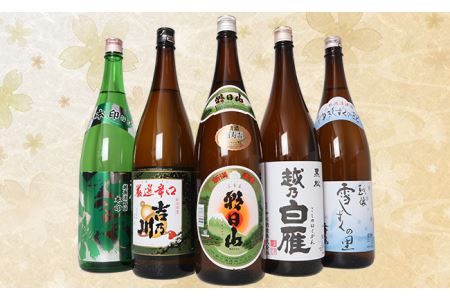 ・朝日山 百寿盃 1800ml ・厳選辛口 吉乃川 1800ml ・越乃白雁 黒松 1800ml ・潟 本醸造 1800ml ・雪しずくの里 1800ml