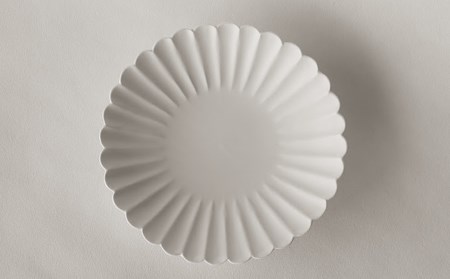 白磁稜花 リム皿(S)×1 【サイズ】 直径:約16cm/高さ:約3cm 【各種家電の対応】 食器洗浄機:○/電子レンジ:○/オーブン:× ※使用して汚れが目立ってきた際は、漂白してお使い下さい。 【ご注文前にお読みください】 臼杵焼は型打ち(かたうち)という技法で制作しています。ローラーで板状にのした粘土を、石膏を削り出した型にのせて、花びら一枚一枚を指で形作っていきます。 この作業を経ることで、大量生産では得られない手作りの風合いが残り、磁器作品でありながら土物の様な表情が生まれます。 そのため型作りではありますが、ひとつひとつ作品に多少の歪みやカタチの違いがあります。 性質上、色ムラや、微細な不純物の点などが発生します。 それらも手作りの副産物ですので、うつわの個性、表情としてお楽しみください。