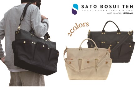 ◆国産4号帆布(本体・ベルト) ◆国産10号パラフィン帆布(底布) ◆国産6号帆布(外ポケット) 本体 :W420mm(上部560mm)×H340mm×D140mm ベルト長 :開口部より300mm ショルダー長 :640mm~1000mm 《カラー:ブラック 》 ※商品のサイズは公称値です。 多少個体差が御座いますのでご了承ください。