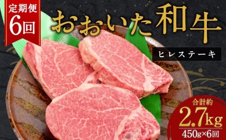 【人気の冷蔵発送】【6か月定期便】 おおいた和牛 ヒレステーキ 150g×3枚 計2.7㎏