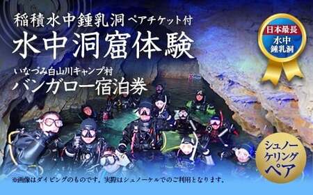 058-252x1 水中洞窟体験シュノーケリングペア+いなづみ白山川キャンプ村5名用バンガロー宿泊券
