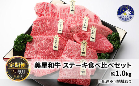 【定期便 2回 毎月届く】美星和牛 ステーキ食べ比べセット 各回約1.0kg 牛肉 岡山県 里庄町 送料無料