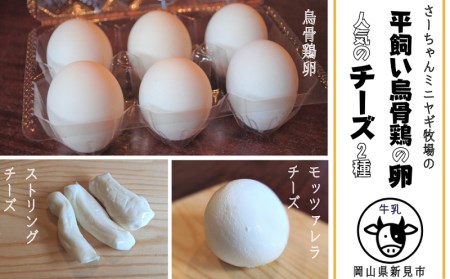 【11月~3月限定・牛乳】平飼い烏骨鶏卵6個 モッツァレラチーズ100g×2 ストリングチーズ50g×2