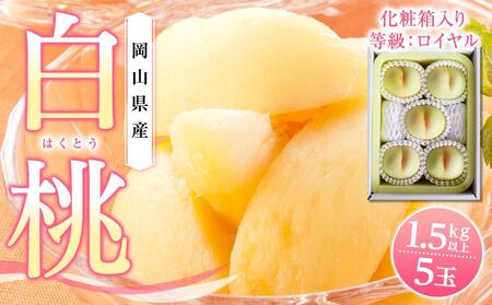 桃 2026年 岡山県産 白桃5玉(1.5kg以上) 等級:ロイヤル 化粧箱入り