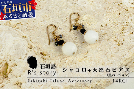 シャコ貝+天然ピアス 黒バージョン RY-1-black