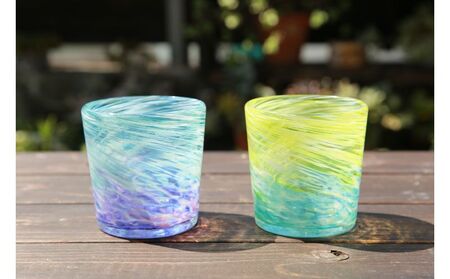 【ガラス工房雫】深海ロックグラス エメラルド・紫2個セット