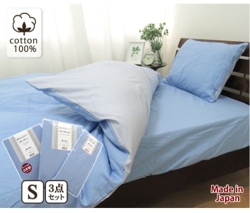 [シングル] 日本製 綿100% ふとんカバー掛・敷・枕3点セット 無地 ブルー CO-S-BL [1796]