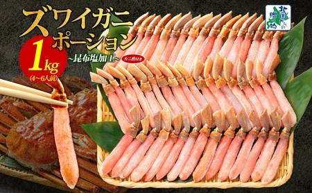 昆布塩加工 本ズワイガニしゃぶポーション 計1kg前後(500g×2P) 蟹酢 30g×4袋 ※蟹足の本数は選べません。あらかじめご了承くださいませ。 ※画像はイメージです。