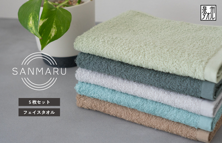 泉州産サンマルタオル 5枚 カラー:アソート5枚セット(ブルー、グレー、グリーン、ダークブルー、モカ 各1枚) サイズ:約34cm×85cm、重さ:約81g(1枚あたり) ※画像はイメージです。