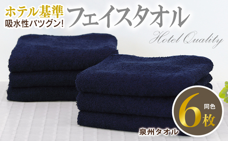 【ホテル基準】吸水性バツグン! フェイスタオル 6枚 (ネイビー) 泉州タオル