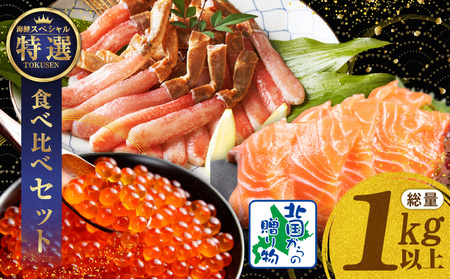 【厳選食べ比べ】ズワイガニ足 1kg前後 昆布塩風味 &いくら 醤油漬け 80g×2P