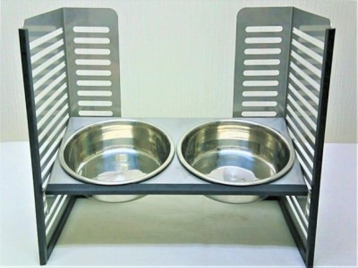ペット食器台 M(中)シルバー フードボール 2皿 犬 猫 ペット用品 4色展開 送料無料