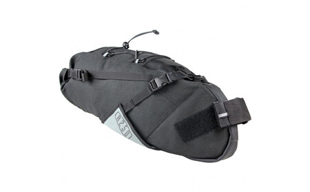 サイズ:横(上から見て)5.5~22cm×長さ(前後)33~43cm×高さ11~13cm、ロールアップを開いた状態の長さは50cm、ロールアップの幅は38cm サドルのレールの下から後輪までの長さが13cm以上が、取り付けられる目安となります。 容量:5~7L 素材:600D/TPU 重量:370g (ショルダーストラップ40gは別)