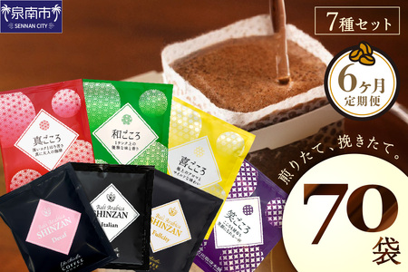 煎りたて 、 挽きたて !ドリップコーヒーセット 7種70袋入り 6ヶ月定期便【配送不可地域:北海道・沖縄・離島】【010B-002】