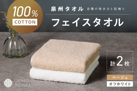 【泉州タオル】吸水力と肌触りが自慢のデイリーユースフェイスタオル オフホワイト・ベージュ 2枚【配送不可地域:北海道・沖縄・離島】【039E-096】