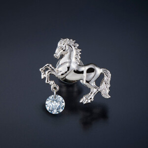 全長約2.9cm 重さ5.6g 駿馬:2.6×1.9cm キュービックジルコニア: 0.5cm(0.78カラット相当) 錫合金、真鍮 キュービックジルコニア、ロジウムメッキ * 化粧箱付