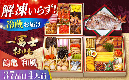 【12月31日お届け】一冨士おせち 鶴亀 和風 3段重+焼き鯛 37品 お節 人気 おすすめ 冷蔵おせち[AOCN004]